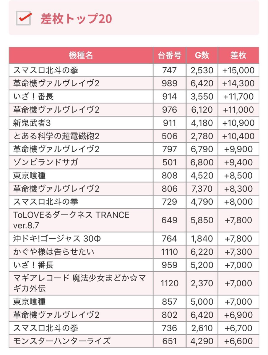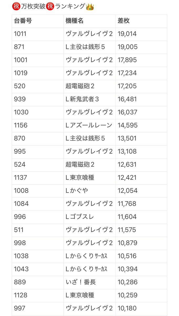 🌋11/15 調査結果🌋 🔥ビックディッパー新橋1号店 ⏩企画名 🌈総差枚 +81,797枚 🌈平均差枚 +146枚 【L戦国乙女4】 📈合計差枚 +35,600枚 📈平均差枚 +7,120枚 【とある科学の超電磁砲2】 📈合計差枚 +16,425枚 📈平均差枚 +5,475枚 【吉宗】 📈合計差枚 +45,470枚 📈平均差枚 +4,547枚 pic.x.com/kVqGVXyPYE