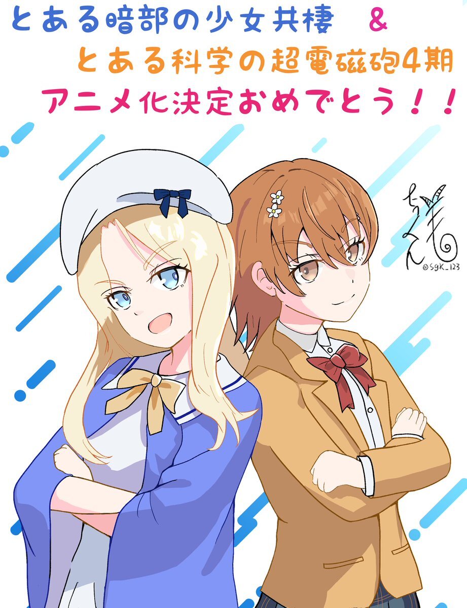 とある科学の超電磁砲20巻発売おめでとうございます! そして、超電磁砲4期&とある暗部の少女共棲アニメ化決定おめでとうございます! 自信あり気な表情のフレンダ&美琴描きました! pic.x.com/3vsPkCtHH9