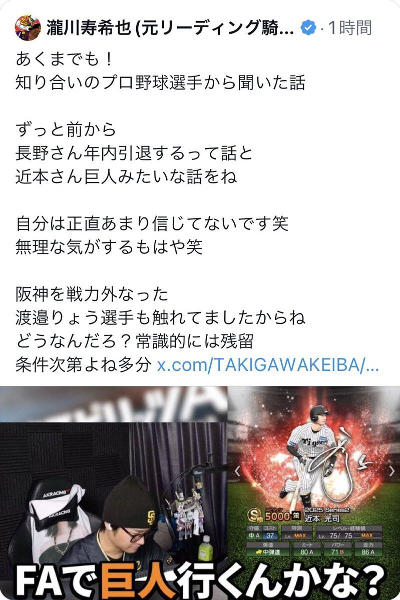 近本さん巨人に8割9割傾いてるらしい x.com/TAKIGAWAKEIBA/…