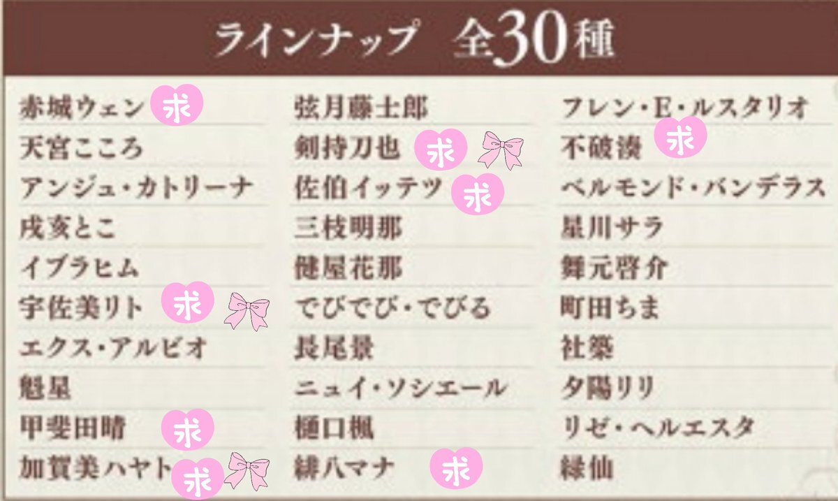 にじさんじウエハース2は在庫復活してたよー!!!!!!箱買いまだ出来るよ!!!!!!私はした!!!!!