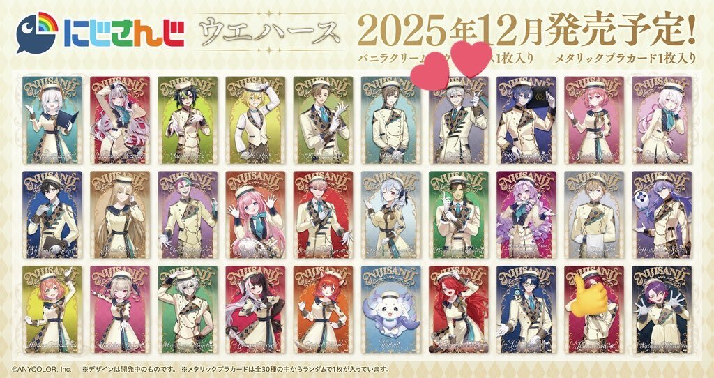 #PR コンシェルジュ衣裳ビジュアルの第2弾‼️ にじさんじ ウエハース2 20個 BOX Amazon ✅amazon.co.jp/dp/B0FV2TCTHK?… 剣持刀也 不破湊 星川サラ 樋口楓 リゼ・ヘルエスタ 成亥とこ 甲斐田晴 三枝明那 長尾景 天宮こころ 加賀美ハヤト イブラヒム でびでび・でびる 宇佐美リト 緑仙 夕陽リリ