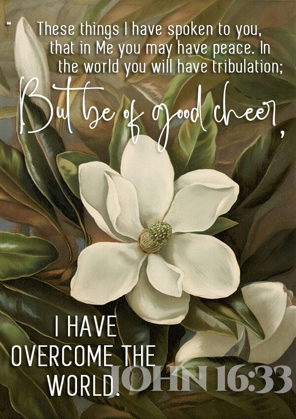 📖 John 16:33 (NKJV) “These things I have spoken to you, that in Me you may have peace. In the world you will have tribulation; but be of good cheer, I have overcome the world.”