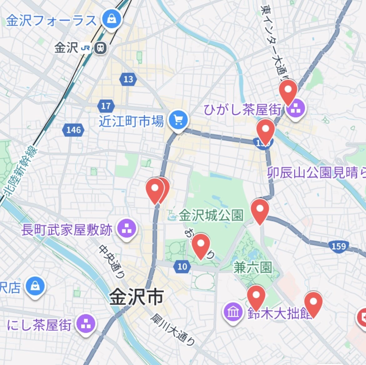 蓮ノ空スタンプラリー、のとじま水族館のマップを作成してみた 金沢市内は兼六園、金沢城公園の周りを巡るって感じだね エクストラスポットは今回も点々としてる のとじま水族館については…車で行ってください (震災で一部道路が不安定になってます)