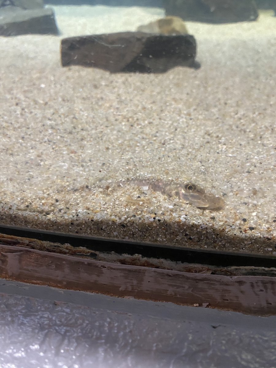 <クイズ‼️> だーれだ❓ #クイズ #ヒントは淡水魚 #砂底から両眼がひょっこり #答えは明日の正午に #石川県 #七尾市 #能登島 #水族館 #のとじま水族館
