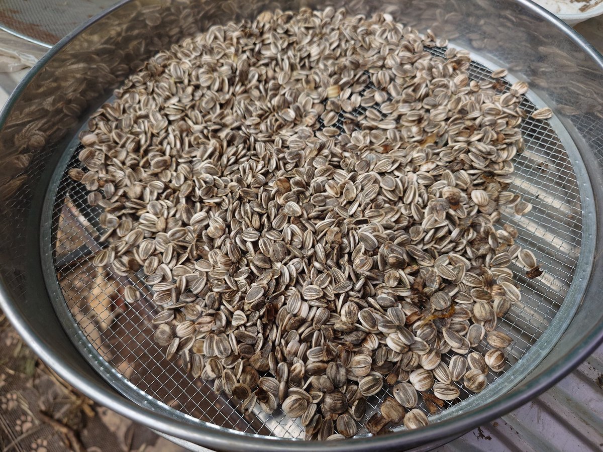 お仲間の患者さんからひまわりの種(食用)を頂いた♪初めて食べましたが美味しかった~😊 ネットで調べたら…100gあたりのカリウム量510mg、リン量は約540mgです。これは生(ブルガリア産)の場合の数値で、高カロリー(約611kcal)なので食べ過ぎには注意が必要です。と…