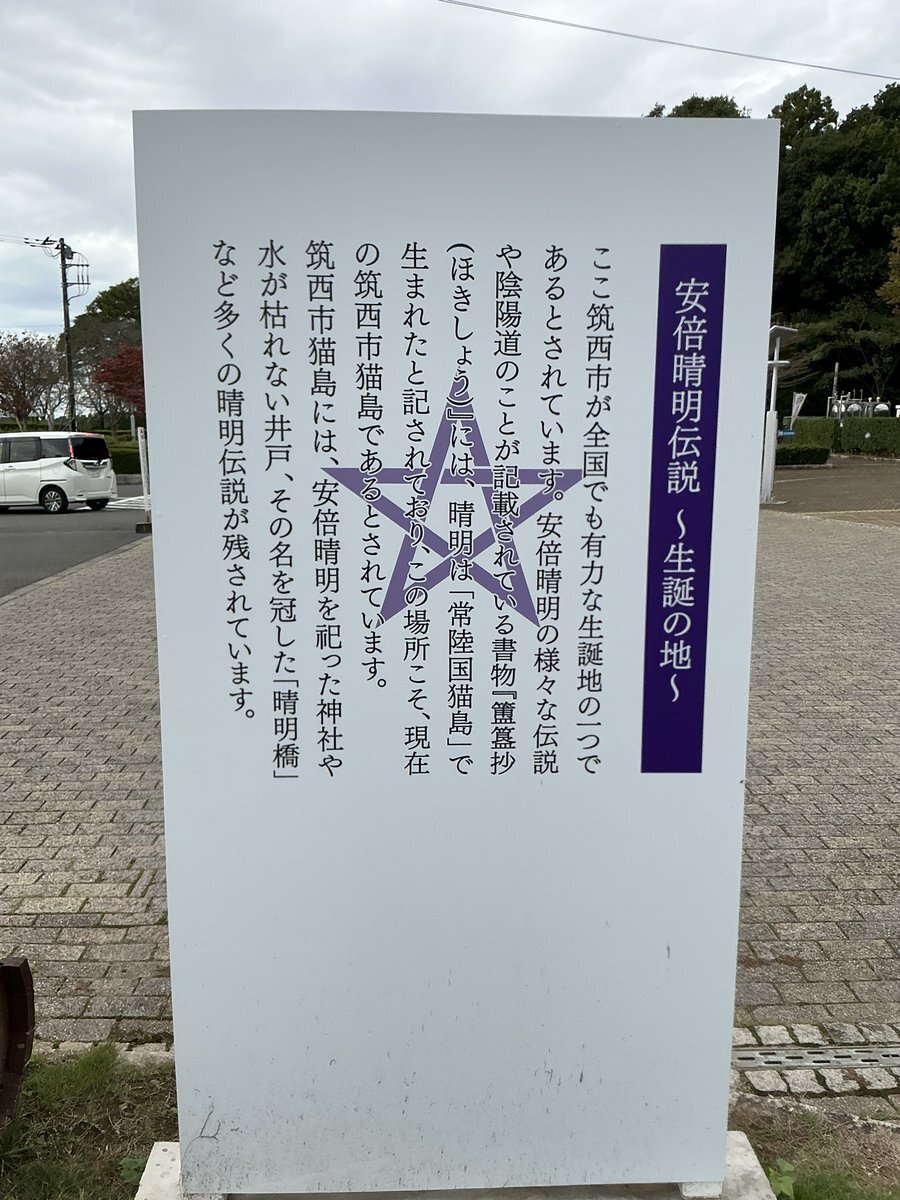 今年はスタンプラリーの対象にはなってませんが、車で筑西市に来たPチャンは宮山ふるさとふれあい公園まで来てみてください。 筑西市には安倍晴明生誕の地という伝承があるそうです。 #筑西市アイマス20周年コラボ pic.x.com/Pyr2XxXFeR