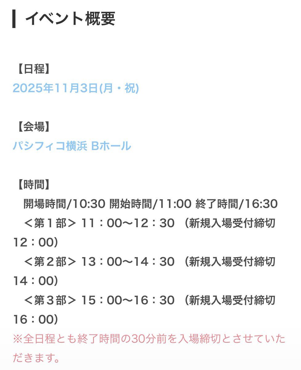 明日開催のツーショット撮影会の会場は『パシフィコ横浜』になります。 ⚠️Aホールではなく"Bホール" *幕張メッセではありませんのでお間違いのないようお気をつけください。 *ノイミーと合同のため会場混雑見込みです。 最寄り駅は みなとみらい駅から徒歩5分 桜木町駅から徒歩12分 pic.x.com/6lzXsaLT8B