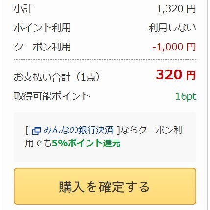 DLsiteでみんなの銀行決済90%OFFクーポンキメてきた。決済中にみんなの銀行アプリを開かないといけないのが分からなくて最初失敗しちゃった。「お待ち下さい」じゃなくて「みんなの銀行アプリを開いて下さい」って表示した方が良いと思う。僕が通知を切ってたのも悪いけど。だって通知ウザかったし。