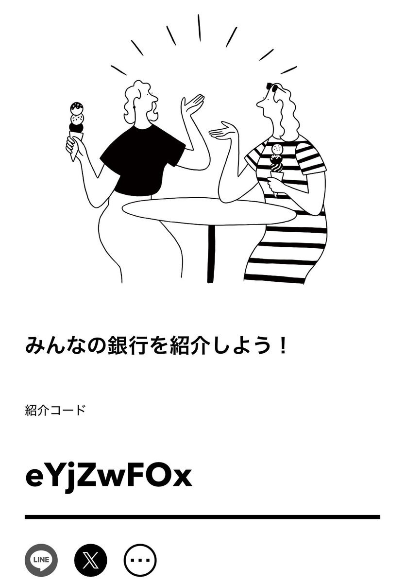 みんなの銀行、Booth使う時用に口座持っていて、開設時の特典(今どうなっているか知らない)やキャッシュバックおいしいから自分は良いと思うけれど、招待コード乞食多い怪しさがあったからおすすめしづらいという 今また注目されているらしい(?)