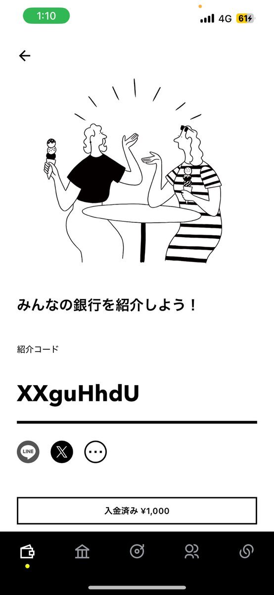 【みんなの銀行】口座開設で500円プレゼント アプリをダウンロードし口座開設時に紹介コ─ドを入力してください 紹介コ─ド:rJViKRrW ※金額は変更になる可能性があります。詳細や適用条件は口座開設時の注意事項をご覧ください ※紹介コ─ドが無効になっている場合があります。ご注意ください。