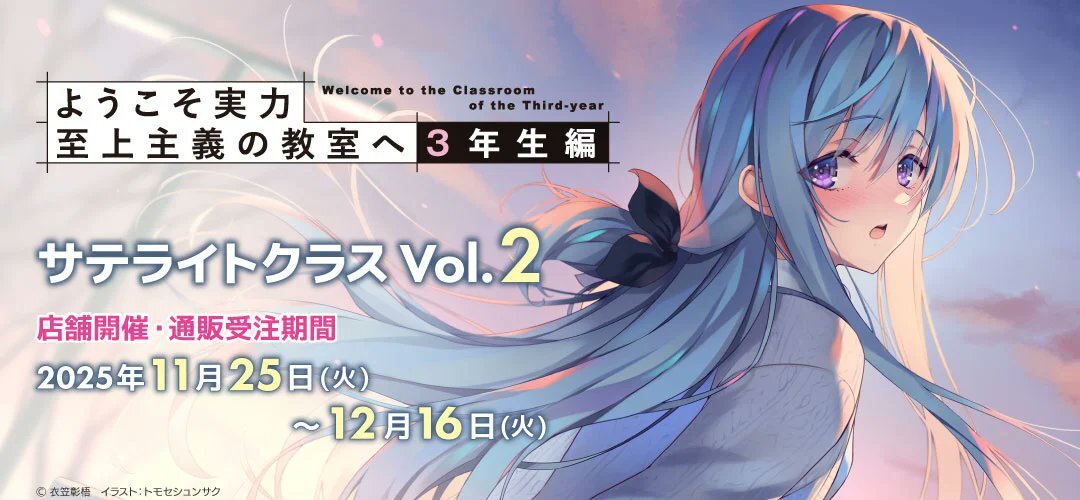 ◤ ̄ ̄ ̄ ̄ ̄ ̄ ̄ ̄ ̄ ̄ ようこそ実力至上主義の教室へ3年生編 サテライトクラスVol.2 __________◢ 「ようこそ実力至上主義の教室へ3年生編 3巻」の発売を記念したサテライトクラスを開催🎉 pic.x.com/VyPro1Dn28