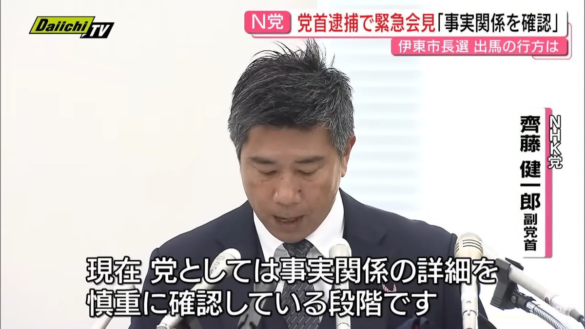 NHK党・党首逮捕…伊東市長選への出馬どうなる?今後について専門家の見方は…(静岡)|Daiichi-TV NEWS NNN news.ntv.co.jp/n/sdt/category… ようやく逮捕された #立花孝志 だが、12月7日告示の「#伊東市長選」への乱入が計画されていた!今回の逮捕により、間違いなく #出馬断念 pic.x.com/ItS3wKr74u
