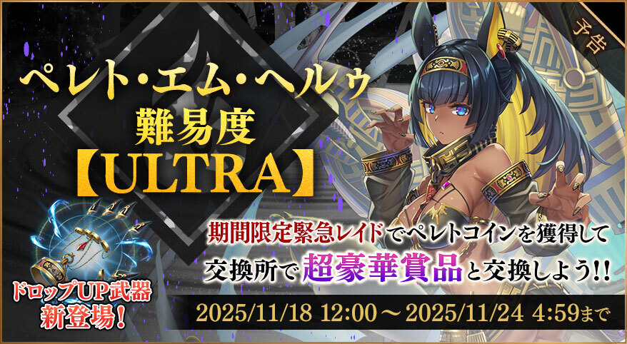 【レイド難易度【ULTRA】開催告知!】 11月18日より『緊急レイド ペレト・エム・ヘルゥULTRA』を開催します🐈️ 開催期間:2025年11月18日~11月24日まで #ミナシゴノシゴト #ミナシゴ