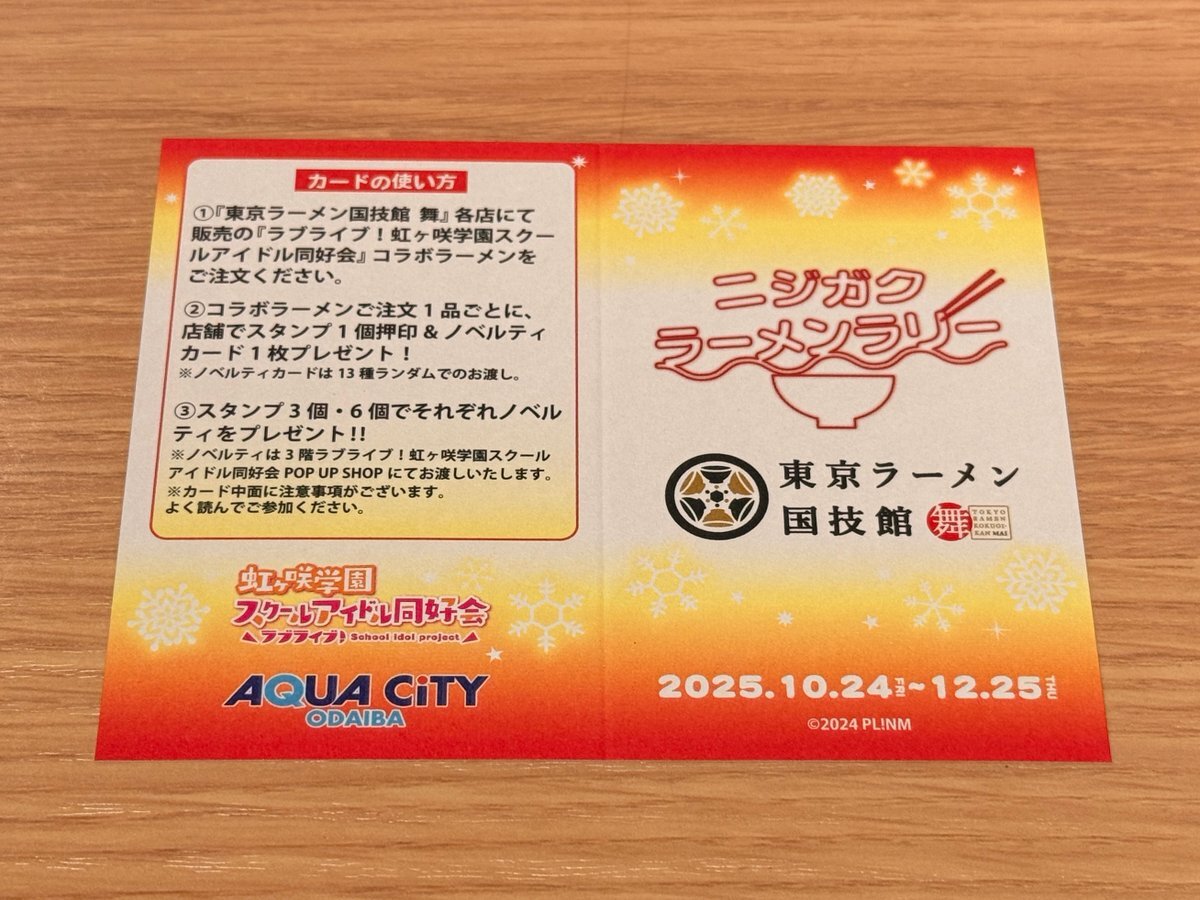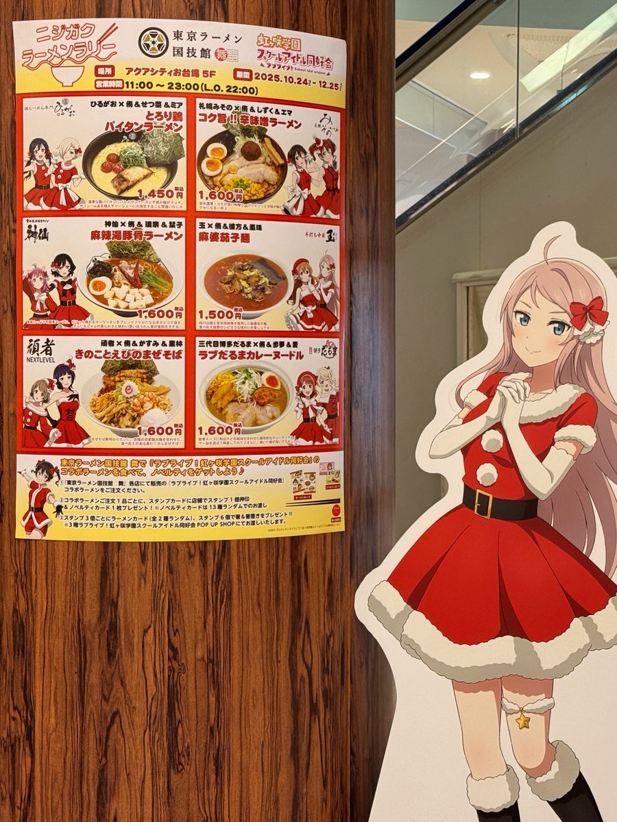 合わせてラブライブ!虹ヶ咲さんとアクアシティお台場さんとのコラボイベントを覗きに、今年も東京ラーメン国技館 舞まで٩( 'ω' )و 飲食コラボ「ニジガクラーメンラリー」に乗じて、1年ぶり3度目のコラボラーメンを楽しんで参りました。すっかり定期イベントに✌ x.com/maidenhalo/sta… pic.x.com/vwKkVE2XW9