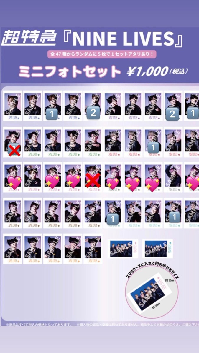 超特急 NINE LIVES ミニフォト 譲▶︎▶︎ 🔢 求▶︎▶︎💖 ・2/20,21の代々木公演にて手渡しでの交換可能です! ・明日11/23にユナイテッド・シネマアクアシティお台場に行きますのでその際でも可能です!(16:35上映の回です) 気楽にお声がけください✨️✨️ #超特急交換 pic.x.com/Nkjqc0xafs