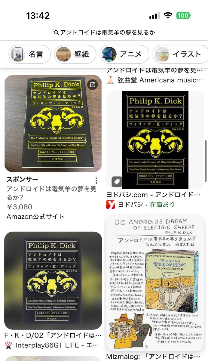 ワイらの年代だと「SF好きじゃないけどアンドロイドは電気羊の夢を見るかは読んだことある」みたいな人達は結構いた気がする x.com/marumizog/stat…
