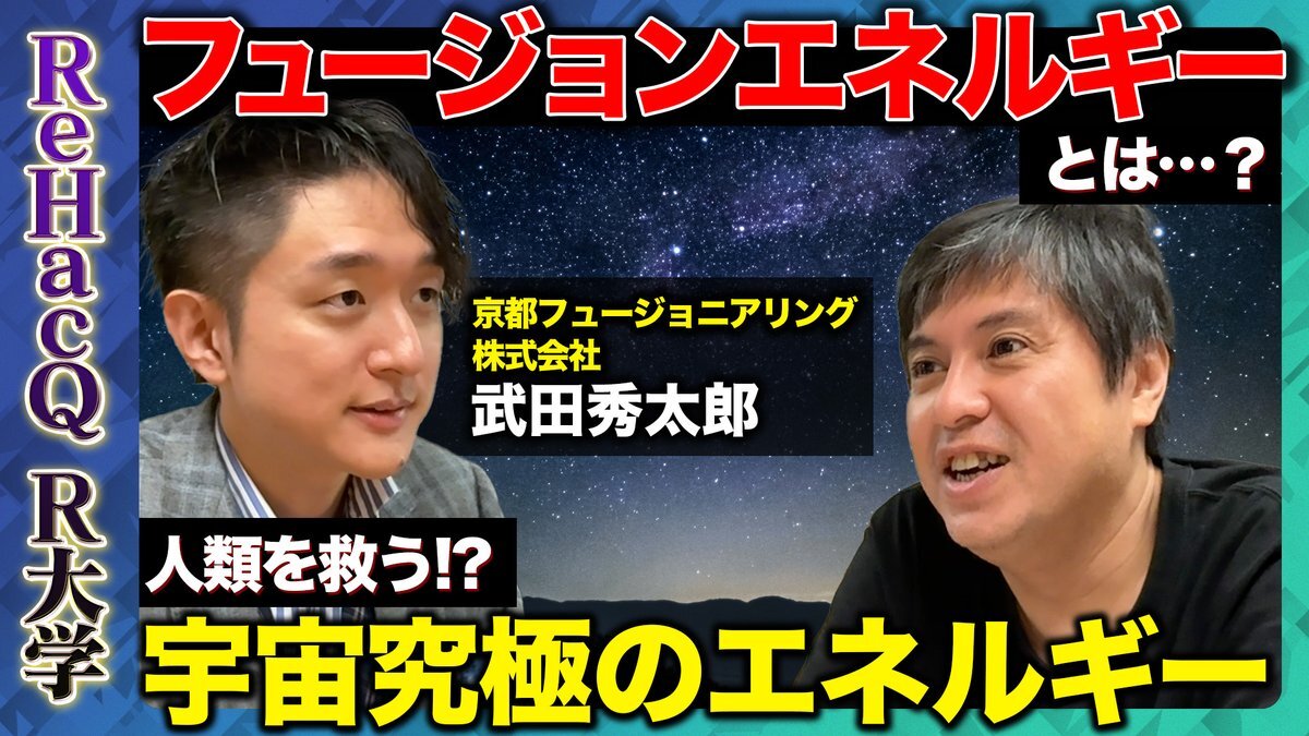 【ReHacQ R大学】 本日21時〜プレミア公開スタート! 今回は、慶應義塾大学大学院メディアデザイン研究科准教授の 武田秀太郎さんに、フュージョンエネルギーとは何か?を 教えていただきました! ご視聴はこちらから youtu.be/Hw8StDWqldg よろしければチャンネル登録お願いします pic.x.com/f7btyPLIn3