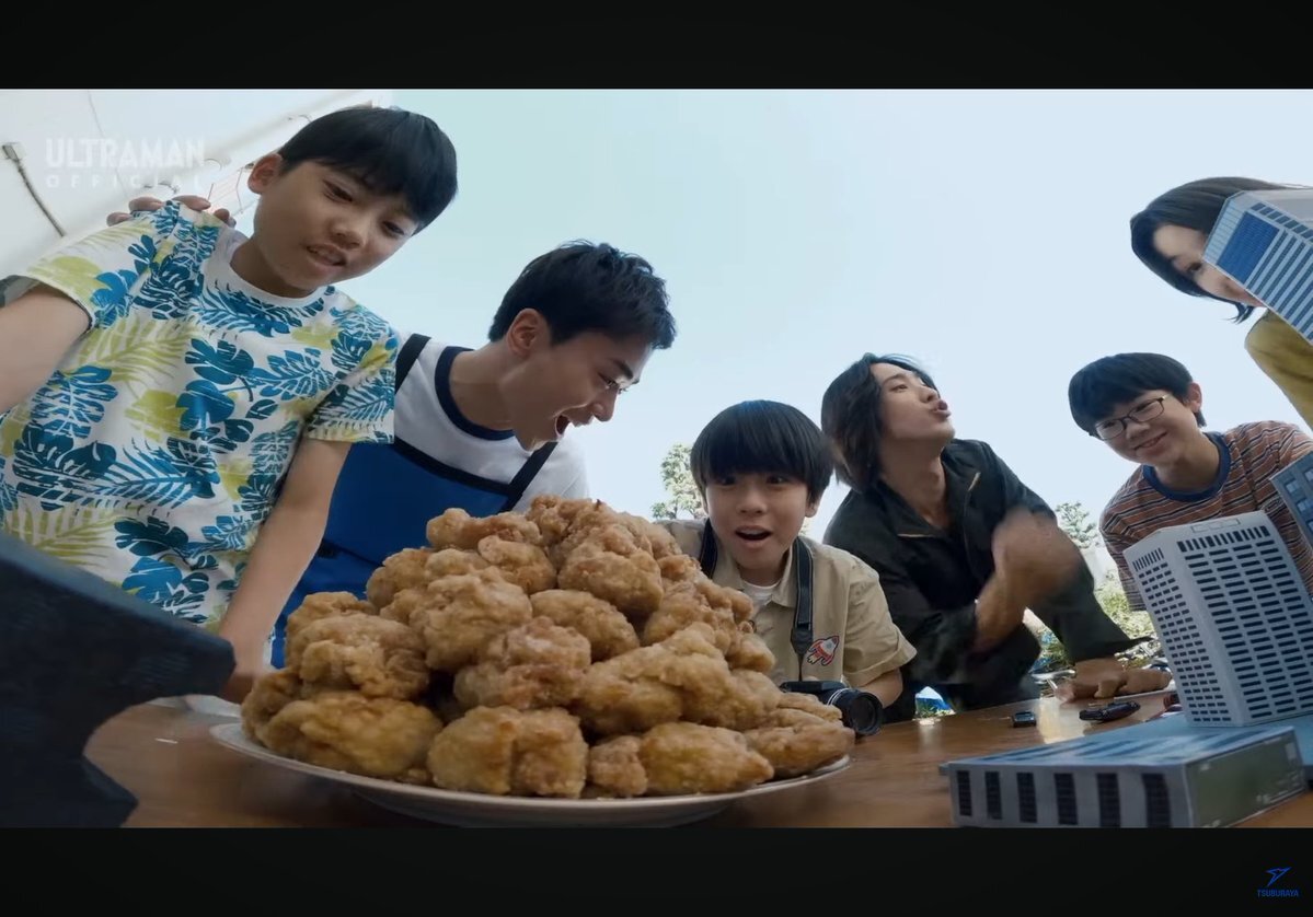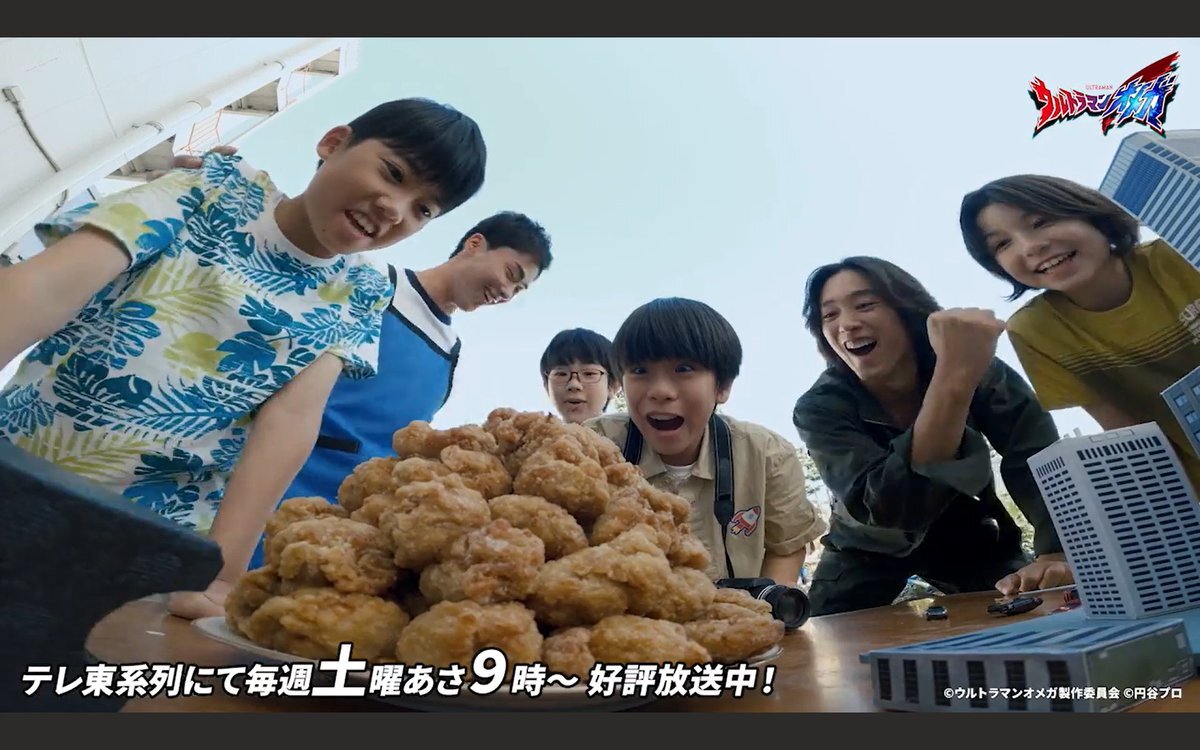 熱っつあつの大盛り唐揚げ、ソラトが早速いっぱい食べようとするが、エーイチくんに「ダメ!撮影に使うんだから3個まで」といわれて「え~っ?」てなってそう。 ラスト、光線ポーズやったらバレるぞソラト(笑) #ウルトラマンオメガ