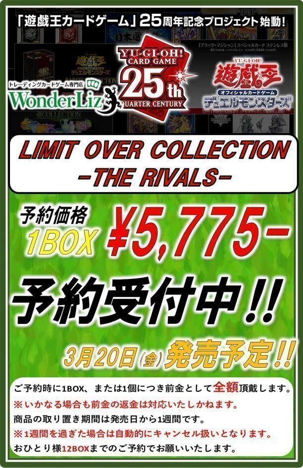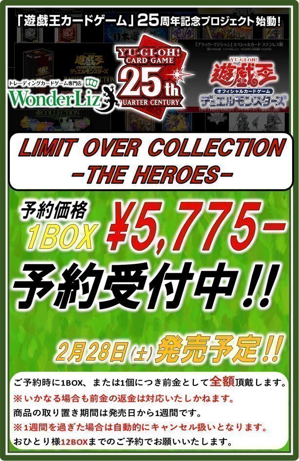 【WonderLiz大須2号店 #遊戯王 予約情報】 「オーバーフレーム」カードで話題沸騰🔥 🗓️2/28発売 🔱LIMIT OVER COLLECTION THE HEROES 1BOX 5⃣7⃣7⃣5⃣円 🗓️3/20発売 ⚜️LIMIT OVER COLLECTION THE RIVALS 1BOX 5⃣7⃣7⃣5⃣円 それぞれ予約受付中です💁‍♂️✨ 迷ったらすぐにご予約を🙌🙌 pic.x.com/99F3wCWV3m