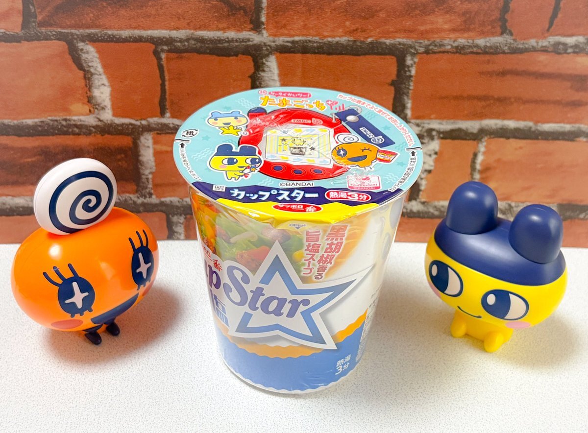 今日のお昼‼️ 「カップスター 旨塩」 #たまごっち コラボに釣られてまとめ買いしてたやつ😁 めめっちがカップスター持ってるよ❣️ 可愛すぎるよ🤩 #ぬい撮り #めめっち #まめっち #カップラ記録2025 pic.x.com/QsyIoDZDNw