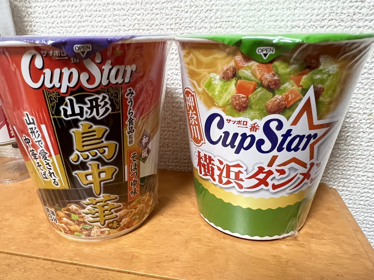 先週と今日堪能した昼麺🍜 鳥肉が肉肉しくジューシーなあっさり醤油スープの山形名物麺とスッキリ塩スープと野菜がシャキシャキでもちもち平打麺が絶妙に絡むこちらの横浜名物麺どちらもメッチャ美味し😆👍‼️ #カップスター #山形鳥中華 #横浜タンメン pic.x.com/Pw8H2rO422