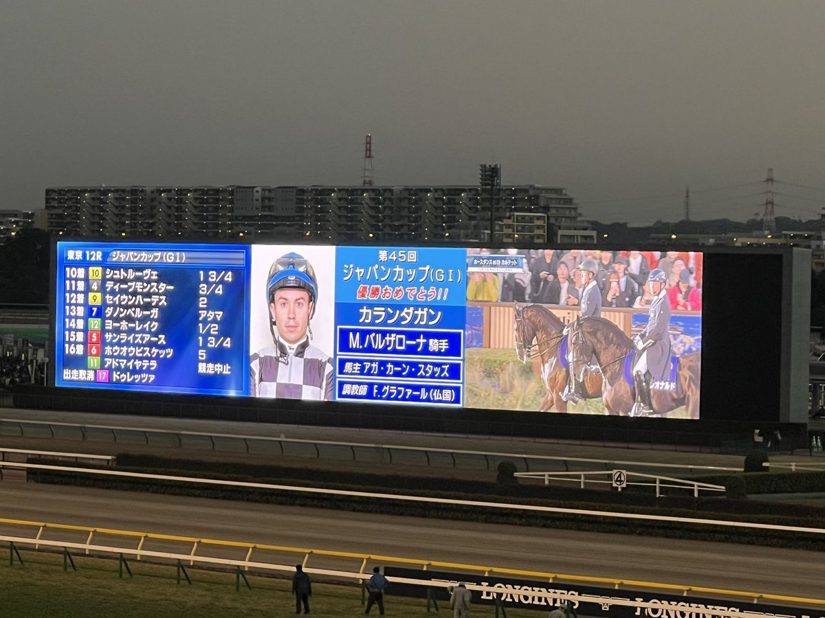 ジャパンカップはカランダガンが勝って、20年ぶりに外国馬が勝利!それもレコード! さすがカルティエ賞年度代表馬!バルザローナ騎手も本当にさすがでした。 いやあ〜、すごいものを見せて頂きました! 感動して、泣きそう。 そして勝っても大人しいカランダガン。なんてお利口なのでしょう!