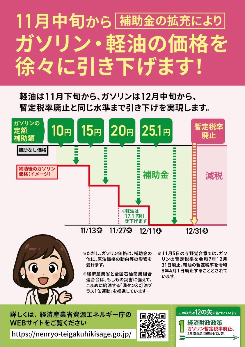 ガソリン値下がりしてます✨ #日本維新の会 12本の矢1本目・経済財政政策 重要な柱の一つ! 【ガソリン暫定税率廃止法案】 衆院財金委員会で可決!法的な手続きが済めば暫定税率は12月末で廃止されます。一刻も早く皆さまの負担を軽くする為、12月まで補助金を拡大し店頭価格を段階的に下げます! pic.x.com/CGLpQtPyIc