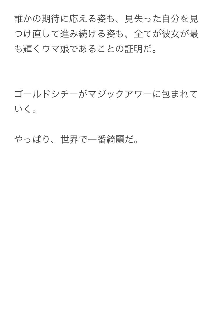 ぱかチューブのギャルウマ娘たちの電話を聴いていたら、朧げながらに浮かんできたんです・・・ 投下させてください。 ありがとうございます。 #ウマ娘 #ゴールドシチー pic.x.com/Mxcy8Q4Ozs