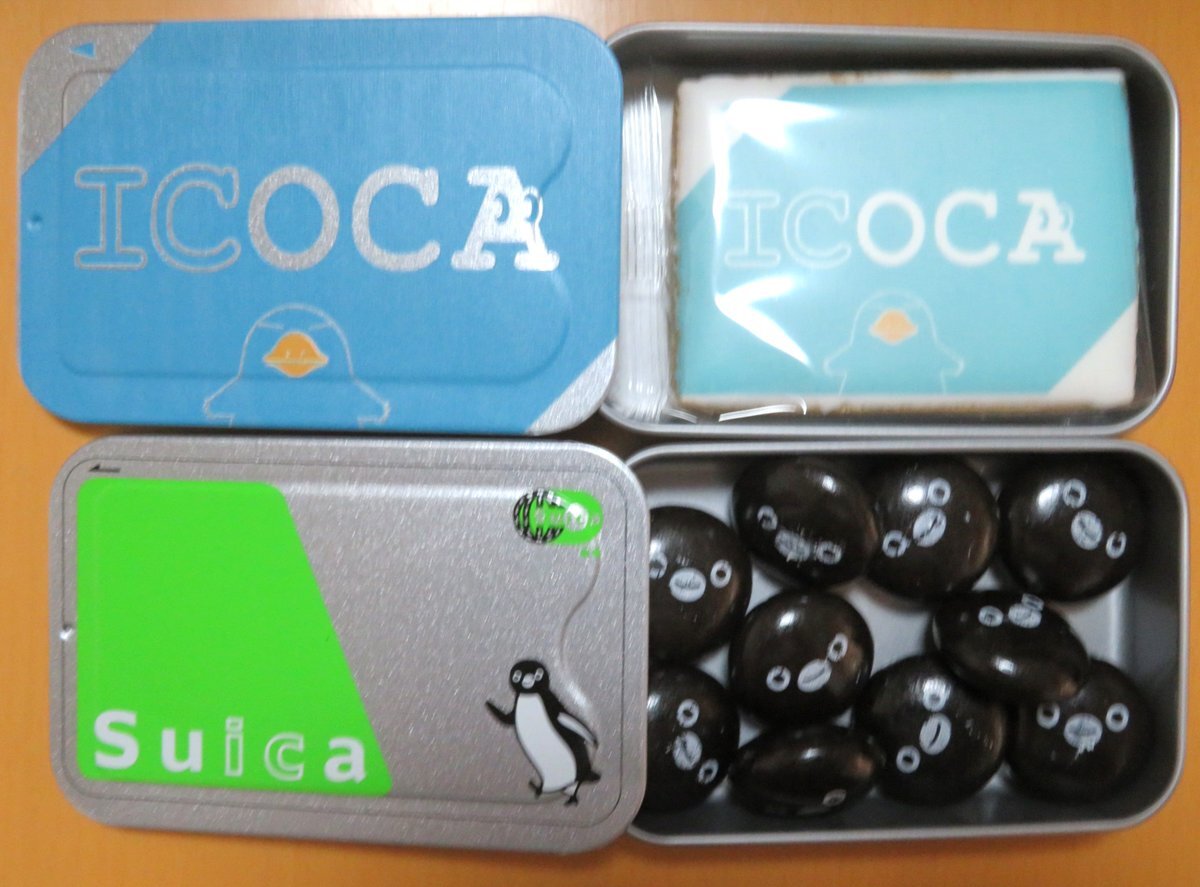 ICOCAカードを模した缶入りICOCAプリントクッキーに Suicaのペンギン プリントマーブルチョコを添えて カモノハシのイコちゃんグミ缶とプリントクッキー、型抜きクッキー お菓子増えました pic.x.com/hbXUcvYvMz