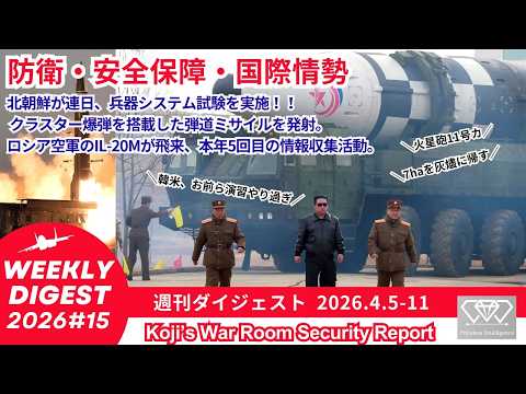 遅くなりましたが、今週の動画を投稿しました。 最近ありきたりになっているので動画コンテンツもリニューアルをしていく予定です。 #KojisWarRoomWeeklyDigest 【26#15】北朝鮮またミサイル発射!!今度はクラスター爆弾搭載の他、兵器試験が相次ぐ。 youtu.be/zbPYN3VJXho?si…