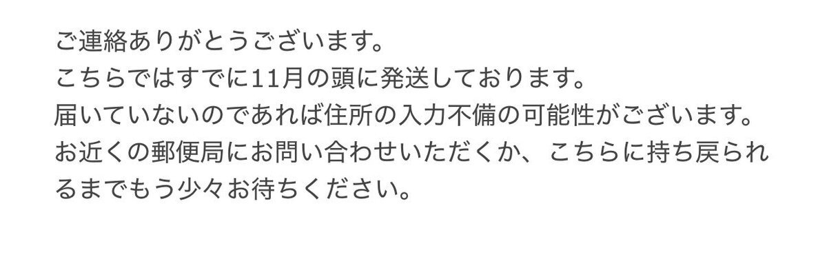綺良ちゃんのシナリオブック届かないから問い合わせたけど発送時期的に住所不備で戻ってきてないならこれ詰んだ? 近くの郵便局でバイトしたことあるけど住所の番地間違えあったとしても一軒家だから名前一致してれば届くはずなんだけど… #増本綺良 #サクラミーツフェス pic.x.com/UP7LVhFcju