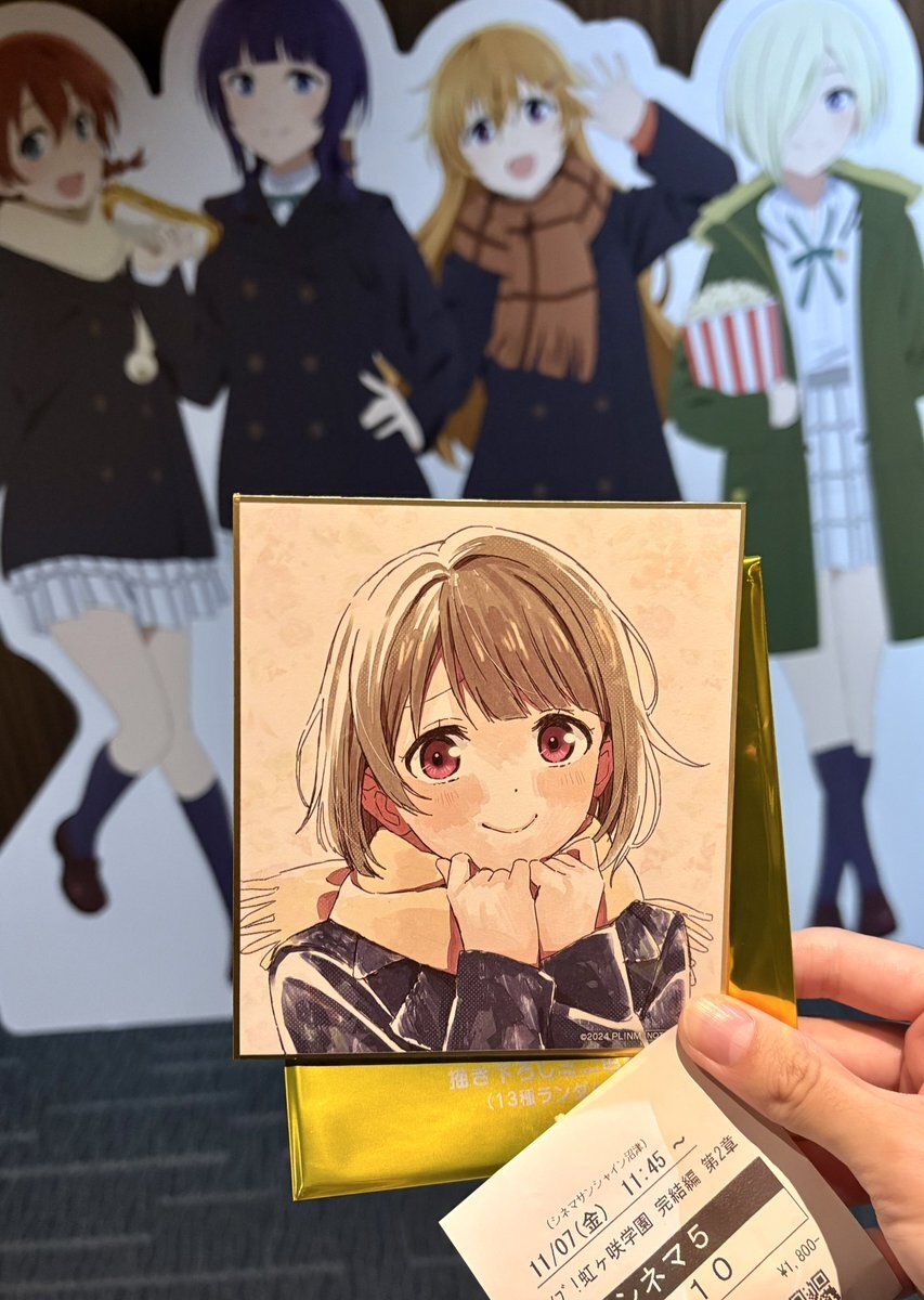 えいがさき視聴わず🎞️ 中川菜々のこと好き好き同好会としては堪らん内容でしたね‼️ #えいがさき #虹ヶ咲 #いい菜々の日 1章も2章もシネマサンシャイン沼津で観たのに、FINAL STAGEの頃には閉館してるの悲しいなぁ😥 だが特典は推しを自引きできて嬉しみ! ちなみに昨年はしず子でした。しずかす〜💧👑 pic.x.com/zzMDnHr4Gm x.com/_0119happy/sta…