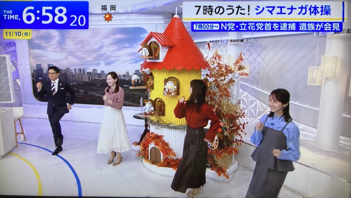 11月はいよいよ中盤、 望月理恵さんと一緒にシマエナガ体操で火曜日をいい一日に! 火曜日のシマエナガ体操 今日も元気にいってみよう!☝️🐥🐣 #thetime_tbs #望月理恵 pic.x.com/RE9md5dbpJ