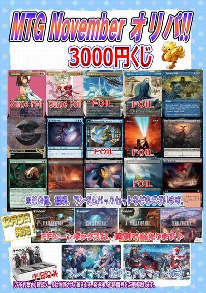 MTG くじ情報♪ 久しぶりに3000円くじを作成してみました。 11/23発送にて、ご予約受付中です。 もうすぐ発売『FINAL FANTASY シーンボックス 』 なども入ってます。 宜しければチャレンジしてみてください。m(_ _)m arrive.co.jp/shop/syousai.c… pic.x.com/KOzcPrczyD