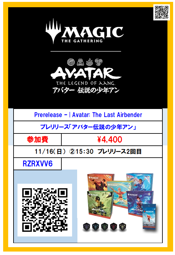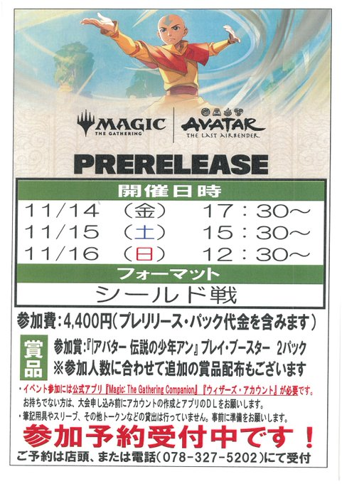 【イベント情報】 「チョコボバンドル」&「シーンボックス」抽選応募の対象となるイベント 『プレリリース:アバター 伝説の少年アン』 本日15:30~に開催です! #イエサブ三宮MTG pic.x.com/91vg6UAkCR x.com/YS_INFO/status…