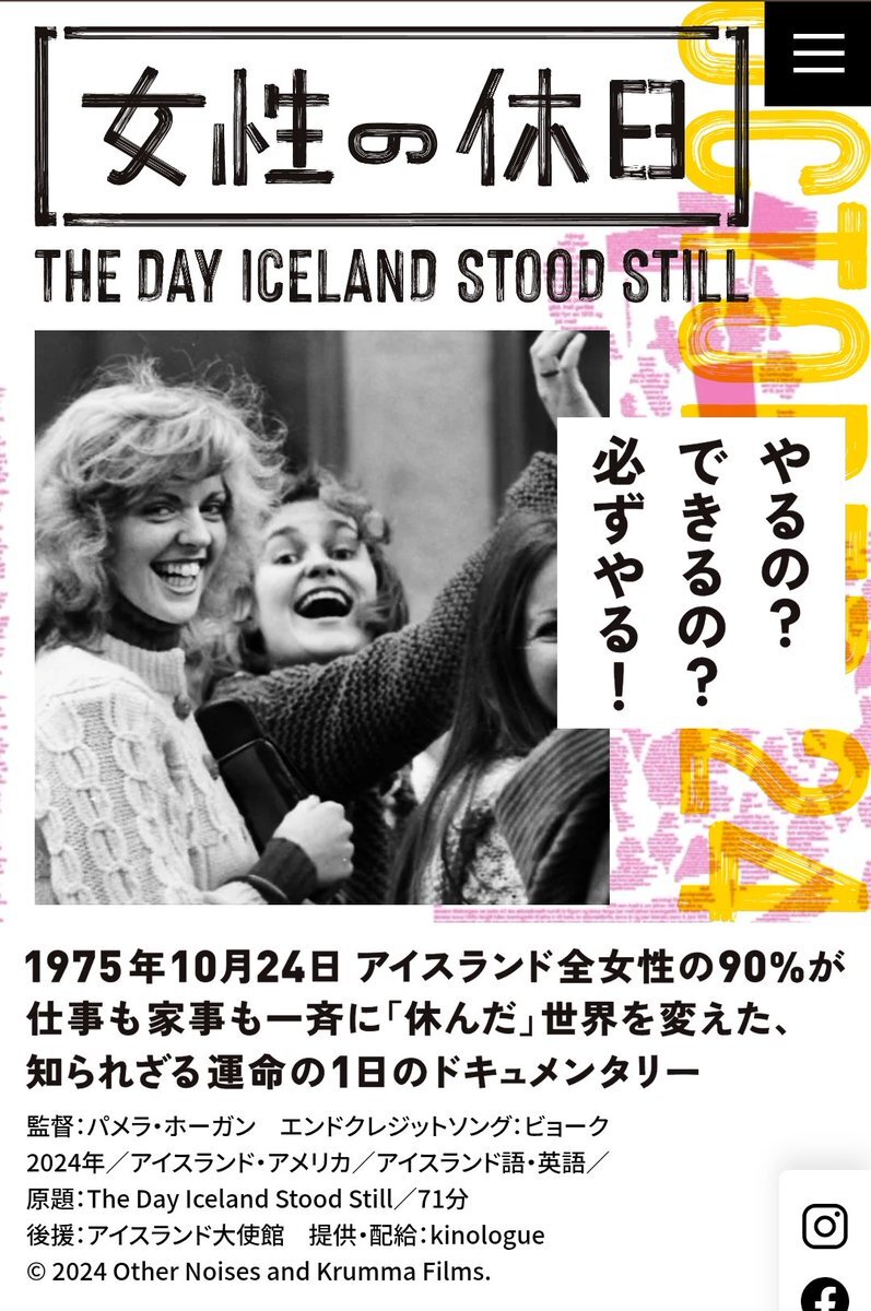 今日は『女性の休日』。1975年、アイスランドで専業主婦を含めた国内の女性の90%が休日という名のストライキを起こして仕事を放棄して社会をフリーズさせ、それがジェンダーギャップ指数16年連続第1位、女性大統領と女性首相が国を治めるという現在地に繋がったというドキュメンタリー pic.x.com/NNIkg4xNSz