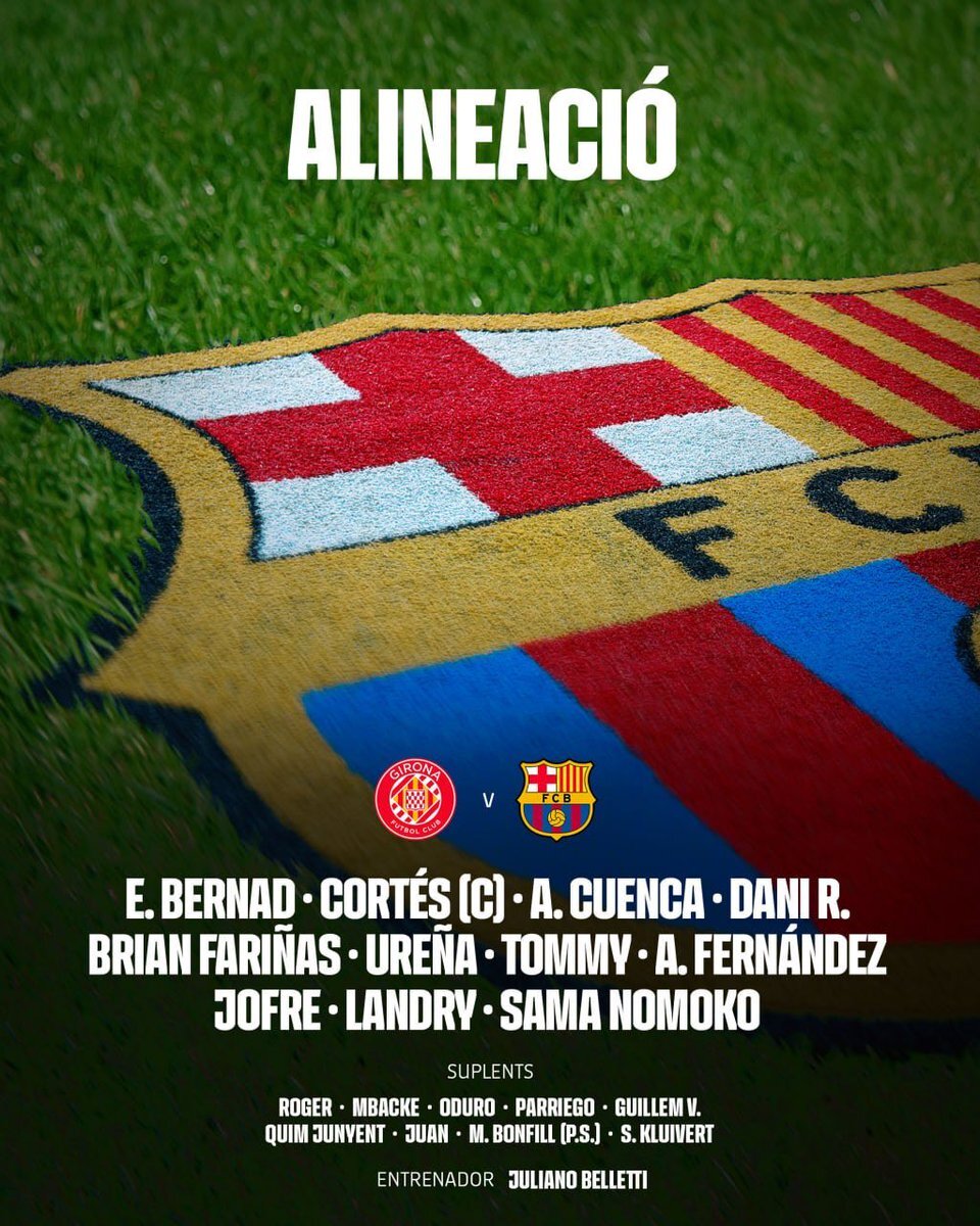 ジローナB戦のスターティングラインナップ バルベラの負傷に伴ってウレニャが偽9番 注目のノモコは右WG、トニはインテリオール クレの間で話題のマルケスがピボーテ トップで期待されていたジョフレ、新加入のエミリオがスタメン pic.x.com/M9kr2wQckq