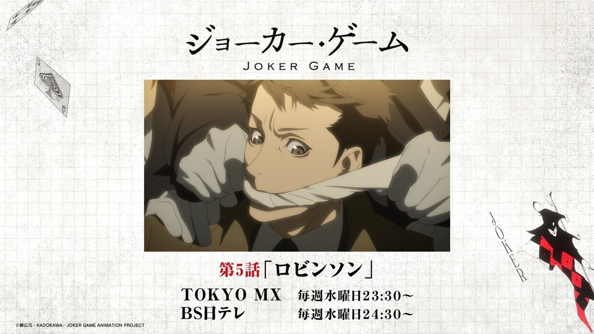 第5話「ロビンソン」 TOKYO MX 23:30~ BS日テレ 24:30~ jokergame.jp #ジョーカー・ゲーム