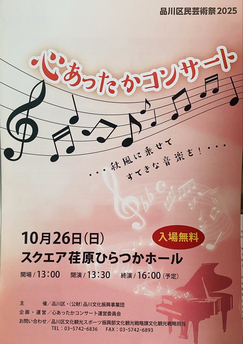 地域の音楽文化活動を 活性化させる アマチュアステージ 心あったかコンサート に、コール・リンデが出演 いたします。🎊 10/26 第一部後半に出番を いただきました。👍 スクエア荏原アクセス よろしい方、ご都合が 合えばぜひお運びください! 😆😃😊 pic.x.com/anT8mQyT3J