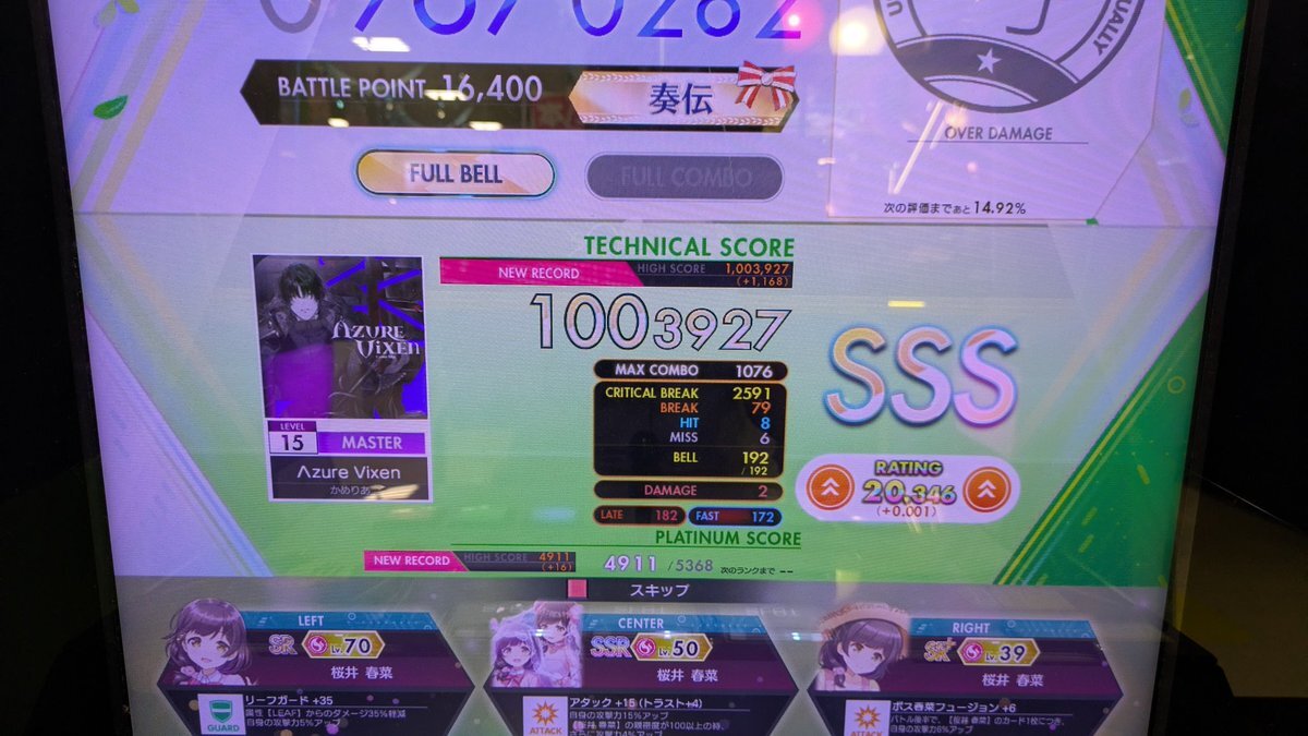 今日は15未鳥組から逃げてスコア低め?な既鳥15さんたちを伸ばしました Stellar:Dream 3.2k Λzure Vixen 3.9k(15スコア2位更新!) Stardust:RAY 1.6k(単曲16."810") MeteorSnow 2.1k スタダさんの1ミスはなに???出したの休憩前の5鍵だし pic.x.com/QzuOdyUniD