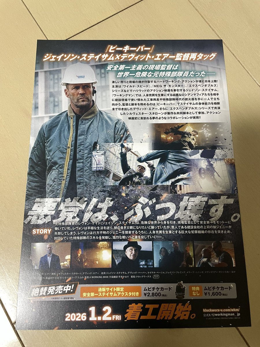 てか今日映画館で新作の情報見てたんだけどこれめちゃくちゃおもろそうやない? まぁ自分が割と現場職&ステイサム好きっていう色眼鏡もあるやろけどあらすじからもうおもろいもん…絶対に見ると思って持って帰ってきて部屋の壁に貼った pic.x.com/OtNZH1LVyW