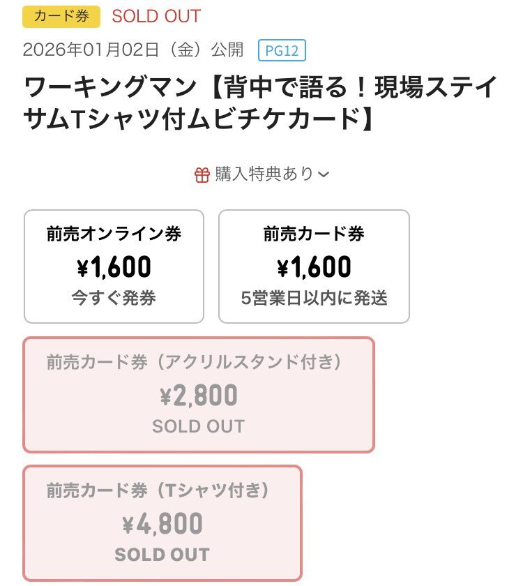 え、ステイサムTシャツ付きムビチケもうLサイズ分ないんですけど。今さっき知ったのに。今朝10時の案内でもうないのか。。('、3_ヽ)_