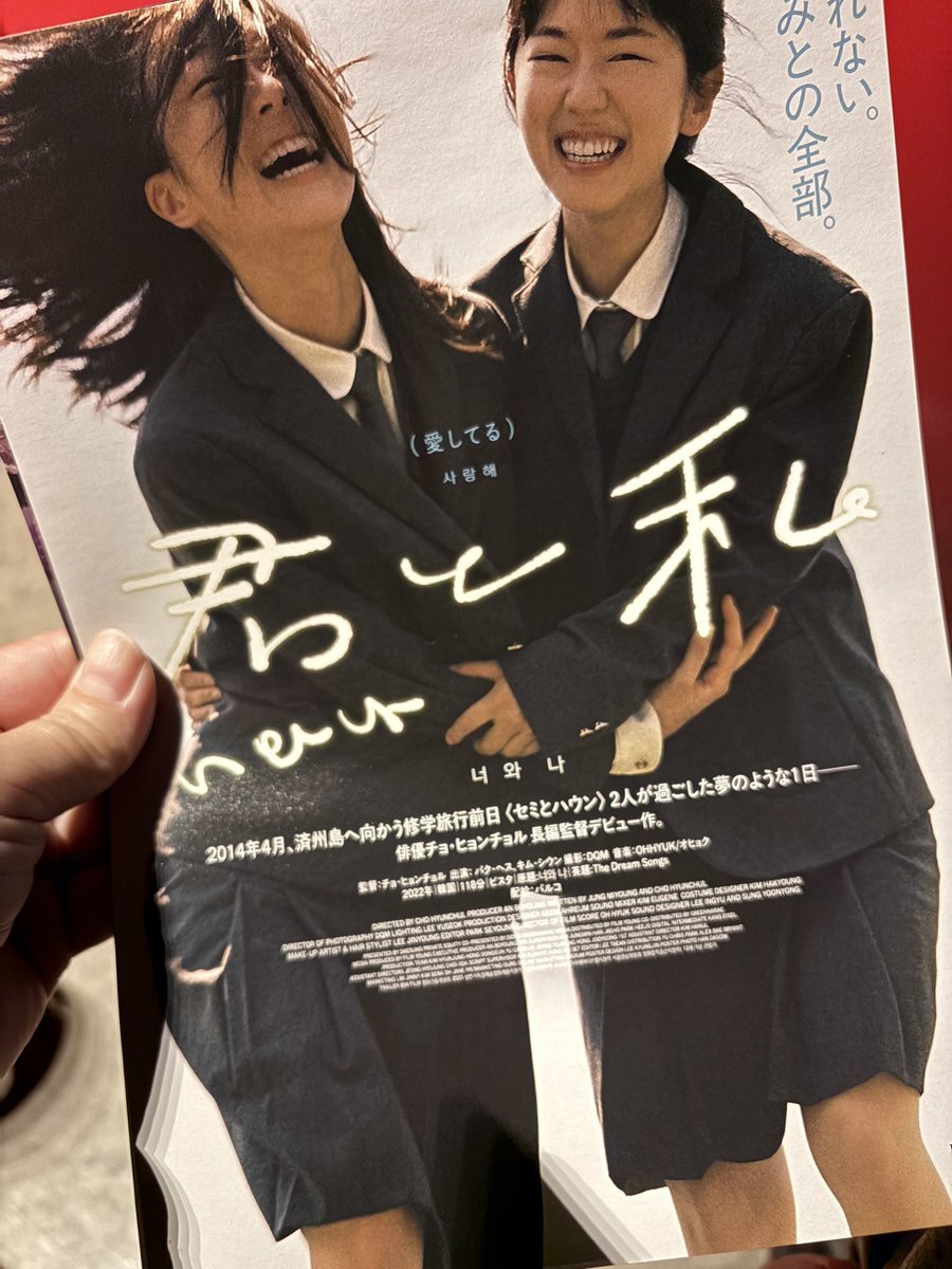 『君と私』鑑賞。愛と友情、寄り添ってくれたものと追憶、確かにあった手触り、今はもうないもの。いろんなモチーフが散りばめられているけどとても単純な愛の物語、それがセウォル号の前夜という死の匂いで特別になってしまう感じ、うまく言語化できないけど、観れてよかったです x.com/din_senin/stat…