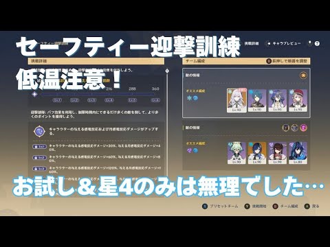 イベントの攻略動画 1日目のも作ってあるけどポストするの忘れてた 今回のイベントはもうちょっとお試しキャラ入れて欲しかったな #原神 【原神】セーフティー迎撃訓練 2日目 低温注意! 4000ポイント攻略 youtu.be/Z1jtqbrD2kg?si… @YouTubeより