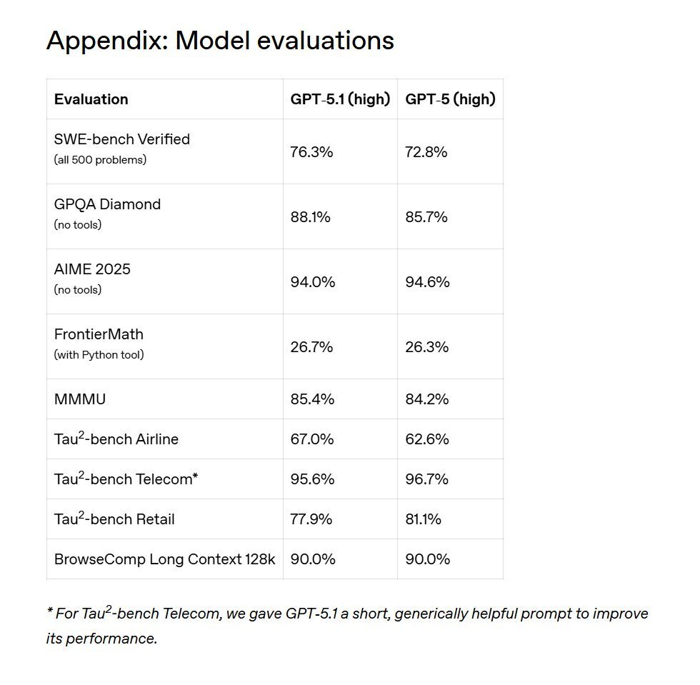 GPT-5.1のベンチマーク評価が公開されました。 特にソフトウェアエンジニアリング(SWE)の分野で驚異的な性能を示しているようです。 pic.x.com/ql52xkBsAc