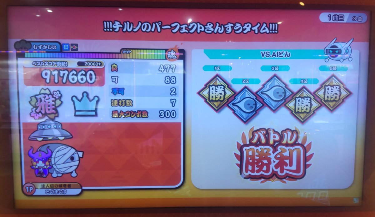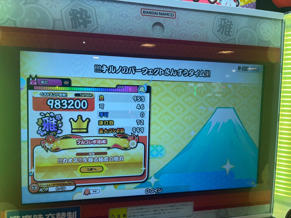 !!!チルノのパーフェクトさんすうタイム!!!  (むずかしい) 初見はあと少しのところで落ちちゃったけど、2回目で初めてクリアしたドン!ソフランが激しく、中盤から高速ドカ処理やカド処理、複合耐えゲーだったドン(^o^:)  でもカオスタイムより簡単カッ!? #太鼓の達人 pic.x.com/ad94xzissw