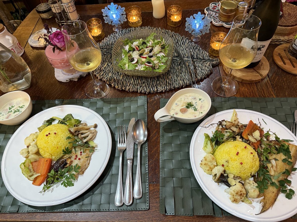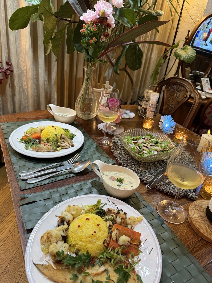 良い夫婦の日、我ら良かれと思えどなかなか難し 舌平目のムニエルとサフランライス(ジャスミン米) ワインはパナメア ケーキはチーズ系、お茶はキームン 『テルマエロマエ』の終わりくらいを観ながら pic.x.com/PZZmoZDgs9