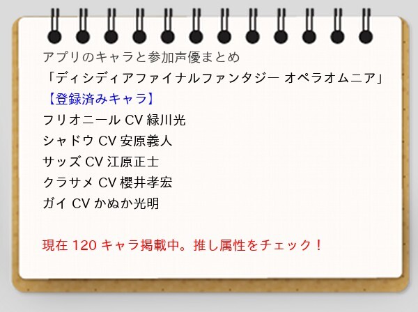 #ディシディアファイナルファンタジー オペラオムニアのキャラと声優と推し属性一覧 appcas.chiho.fun/?APP/1117329809