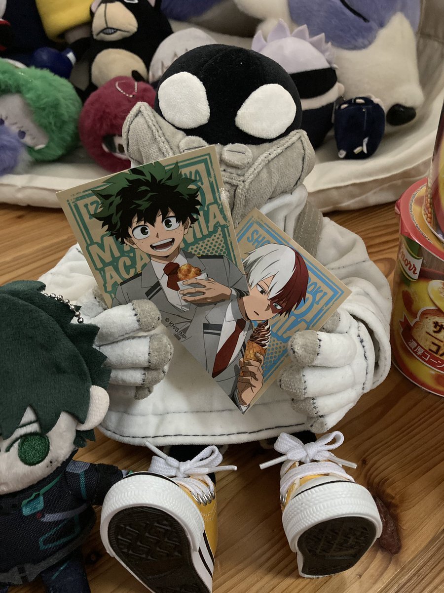 RPセブンのヒロアカコラボ デク君ステッカー、ショート君ステッカーだよおお! かっちゃん、梅雨ちゃん、お茶子さん、切島君ステッカーも欲しかったけど…財布事情で我慢した😣 pic.x.com/Apt6QwtKGB