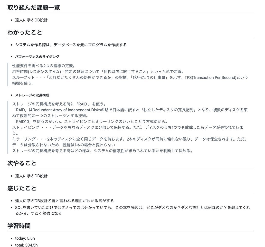 【10/27 学習終了】 達人に学ぶDB設計が名著と言われる理由が分かった気がする SQLをだた書く側から、システム設計目線のデータベースとは何なのか?とか理解が深まった today: 5.5h total: 304.5h #HappinessChain #今日の積み上げ pic.x.com/5Tcv6mEkCQ